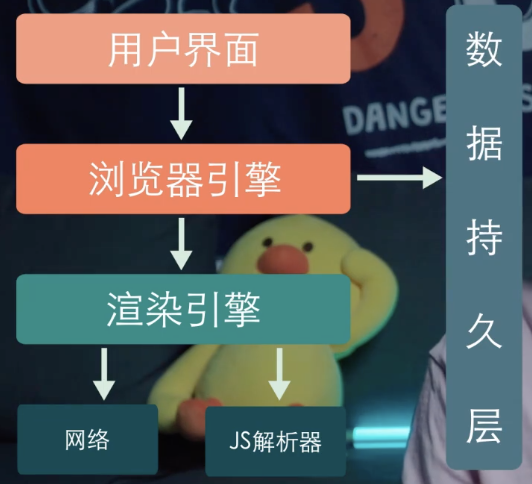 用户界面- 包括地址栏、前进/后退按钮、书签菜单等。除了浏览器主窗口显示的您请求的页面外,其他显示的各个部分都属于用户界面。浏览器引擎- 在用户界面和呈现引擎之间传送指令。呈现引擎- 负责显示请求的内容。如果请求的内容是 HTML,它就负责解析 HTML 和 CSS 内容,并将解析后的内容显示在屏幕上。网络- 用于网络调用,比如 HTTP 请求。其接口与平台无关,并为所有平台提供底层实现。用户界面后端- 用于绘制基本的窗口小部件,比如组合框和窗口。其公开了与平台无关的通用接口,而在底层使用操作系统的用户界面方法。JavaScript解释器。用于解析和执行 JavaScript 代码。数据存储。这是持久层。浏览器需要在硬盘上保存各种数据,例如 Cookie。新的 HTML 规范 (HTML5) 定义了“网络数据库”,这是一个完整(但是轻便)的浏览器内数据库。